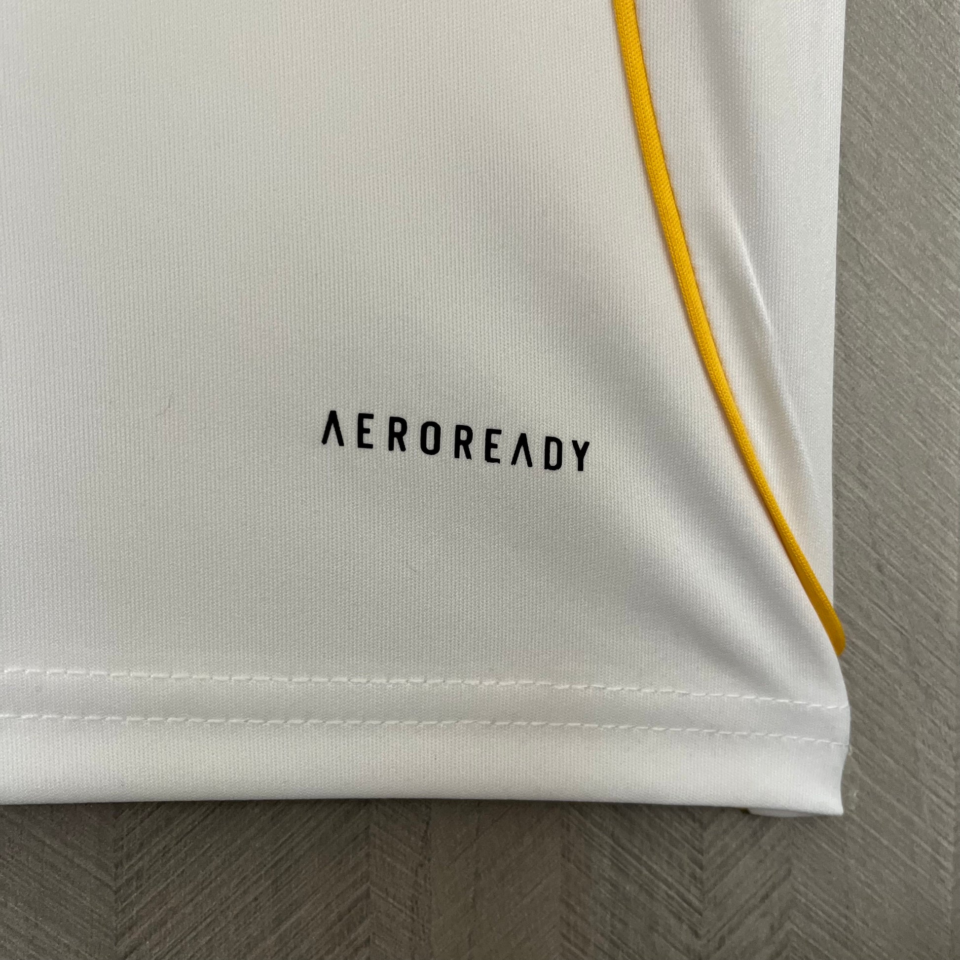 The Kids Real Madrid 25-26 Home Kit includes a shirt and shorts crafted for comfort and durability. Designed with breathable materials, it provides young fans with excellent ventilation and freedom of movement. Featuring the classic Real Madrid colors and authentic club details, this kit allows children to support their team with style and confidence during play or everyday wear. Ideal for aspiring players, it combines performance and fan spirit in a junior fit.